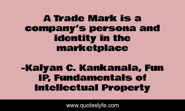 This page presents the quote "A Trade Mark is a company’s persona and identity in the marketplace". Author of this quote is Kalyan C. Kankanala, Fun IP, Fundamentals of Intellectual Property. This quote is about intellectual-property, india, trademark,.