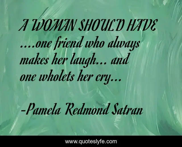 This page presents the quote "A WOMAN SHOULD HAVE ....one friend who always makes her laugh... and one wholets her cry...". Author of this quote is Pamela Redmond Satran. .