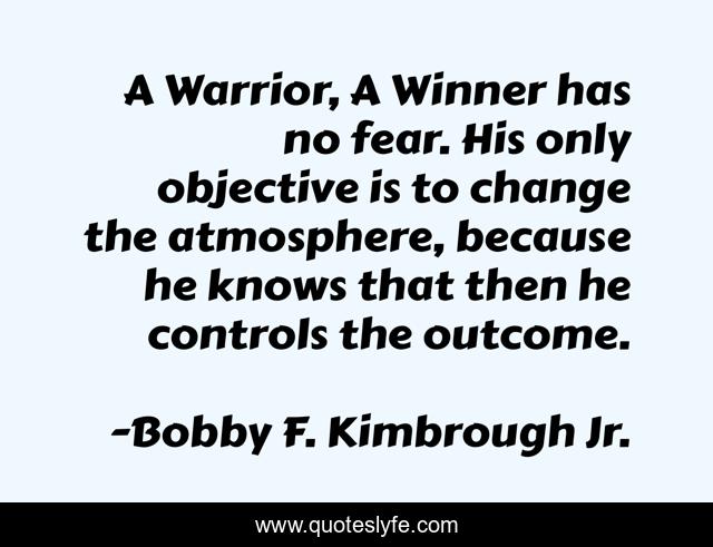 "Bobby F. Kimbrough Jr. Quotes." Quoteslyfe.com, 2025. Fri. 05 Dec. 2025. <https://www.quoteslyfe.com/quote/A-Warrior-A-Winner-has-no-fear-47571>.