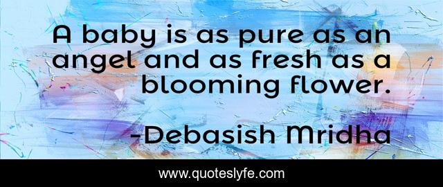 This page presents the quote "A baby is as pure as an angel and as fresh as a blooming flower.". Author of this quote is Debasish Mridha. This quote is about inspirational, philosophy, debasish-mridha, a-baby-is-an-angel, quotes, debasish-mridha-md, babies, enthusiasm, pure-as-an-angel,.