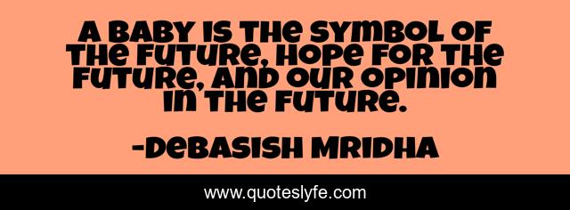 This page presents the quote "A baby is the symbol of the future, hope for the future, and our opinion in the future.". Author of this quote is Debasish Mridha. This quote is about life, love, knowledge, inspirational, intelligence, philosophy, wisdom, affection, truth,.