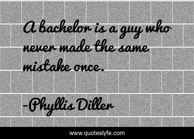 This page presents the quote "A bachelor is a guy who never made the same mistake once.". Author of this quote is Phyllis Diller. This quote is about bachelor, mistake,.