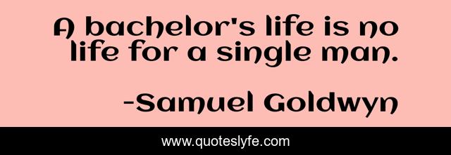 This page presents the quote "A bachelor's life is no life for a single man.". Author of this quote is Samuel Goldwyn. This quote is about life, single, man,.