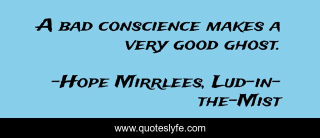 This page presents the quote "A bad conscience makes a very good ghost.". Author of this quote is Hope Mirrlees, Lud-in-the-Mist. This quote is about conscience, literature, lud-in-the-mist, selected, fantasy, gothic, oliviu-craznic, ghosts, hope-mirrlees,.