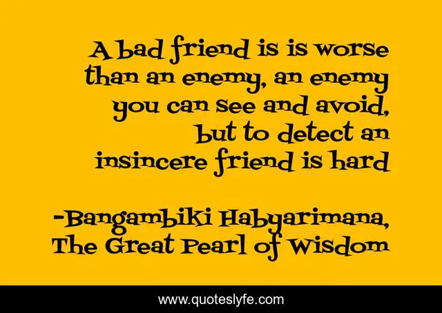 "Bangambiki Habyarimana, The Great Pearl of Wisdom Quotes." Quoteslyfe.com, 2025. Mon. 08 Dec. 2025. <https://www.quoteslyfe.com/quote/A-bad-friend-is-is-worse-than-126828>.