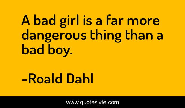 This page presents the quote "A bad girl is a far more dangerous thing than a bad boy.". Author of this quote is Roald Dahl. This quote is about girls, misbehaving,.