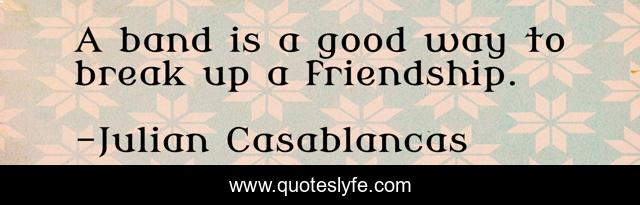 This page presents the quote "A band is a good way to break up a friendship.". Author of this quote is Julian Casablancas. This quote is about band, good, way,.