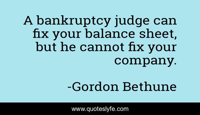 This page presents the quote "A bankruptcy judge can fix your balance sheet, but he cannot fix your company.". Author of this quote is Gordon Bethune. This quote is about judge, company, balance,.