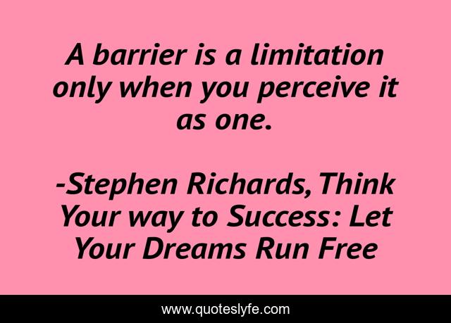 "Stephen Richards, Think Your way to Success: Let Your Dreams Run Free Quotes." Quoteslyfe.com, 2025. Fri. 05 Dec. 2025. <https://www.quoteslyfe.com/quote/A-barrier-is-a-limitation-only-when-36078>.