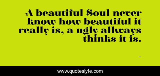 This page presents the quote "A beautiful Soul never know how beautiful it really is, a ugly allways thinks it is.". Author of this quote is . This quote is about beautiful, soul,.