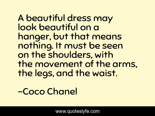 This page presents the quote "A beautiful dress may look beautiful on a hanger, but that means nothing. It must be seen on the shoulders, with the movement of the arms, the legs, and the waist.". Author of this quote is Coco Chanel. .