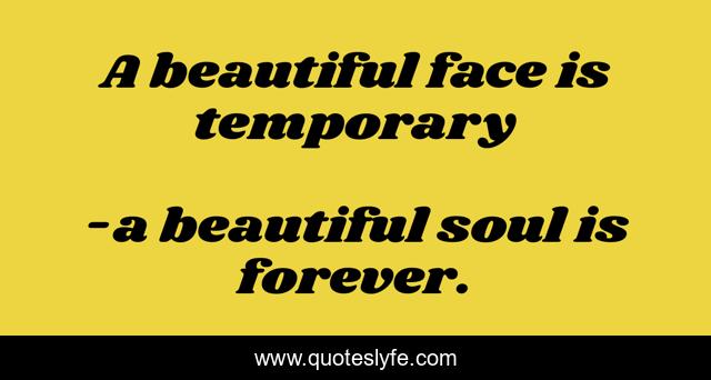 This page presents the quote "A beautiful face is temporary". Author of this quote is a beautiful soul is forever.. .