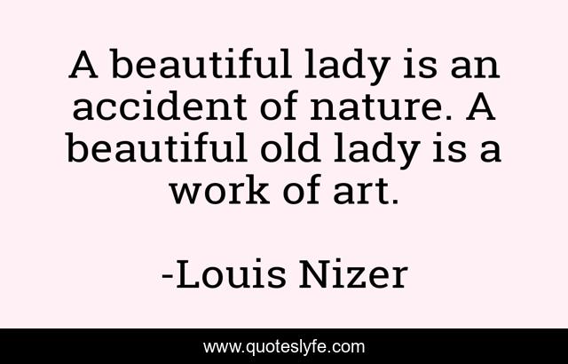 This page presents the quote "A beautiful lady is an accident of nature. A beautiful old lady is a work of art.". Author of this quote is Louis Nizer. This quote is about beautiful, art, nature,.