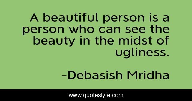 This page presents the quote "A beautiful person is a person who can see the beauty in the midst of ugliness.". Author of this quote is Debasish Mridha. This quote is about beautiful, life, debasish, beauty, mridha, philosophy, ugliness,.