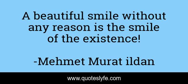 This page presents the quote "A beautiful smile without any reason is the smile of the existence!". Author of this quote is Mehmet Murat ildan. This quote is about smile, happiness,.