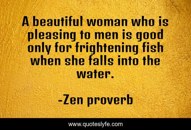 This page presents the quote "A beautiful woman who is pleasing to men is good only for frightening fish when she falls into the water.". Author of this quote is Zen proverb. .