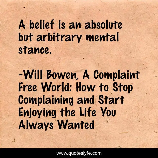 "Will Bowen, A Complaint Free World: How to Stop Complaining and Start Enjoying the Life You Always Wanted Quotes." Quoteslyfe.com, 2025. Fri. 05 Dec. 2025. <https://www.quoteslyfe.com/quote/A-belief-is-an-absolute-but-arbitrary-111664>.