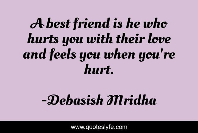This page presents the quote "A best friend is he who hurts you with their love and feels you when you're hurt.". Author of this quote is Debasish Mridha. This quote is about life, love, knowledge, inspirational, intelligence, philosophy, wisdom, quotes, affection,.