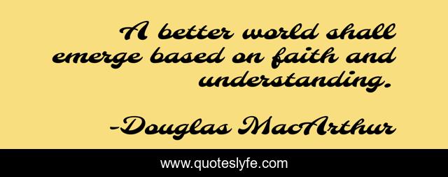 This page presents the quote "A better world shall emerge based on faith and understanding.". Author of this quote is Douglas MacArthur. This quote is about better, world, understanding,.
