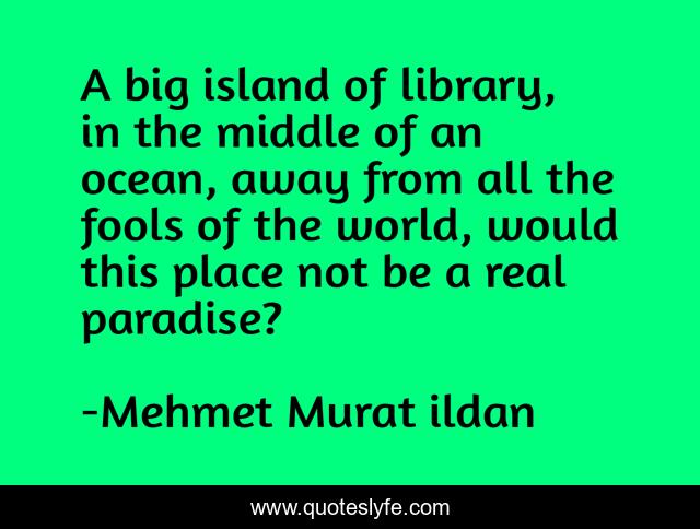 This page presents the quote "A big island of library, in the middle of an ocean, away from all the fools of the world, would this place not be a real paradise?". Author of this quote is Mehmet Murat ildan. .