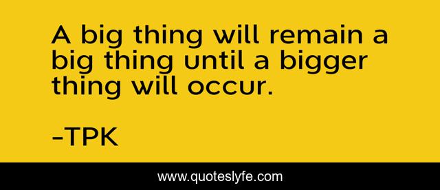 This page presents the quote "A big thing will remain a big thing until a bigger thing will occur.". Author of this quote is TPK. This quote is about life, perspective,.