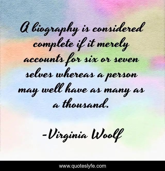 This page presents the quote "A biography is considered complete if it merely accounts for six or seven selves whereas a person may well have as many as a thousand.". Author of this quote is Virginia Woolf. .