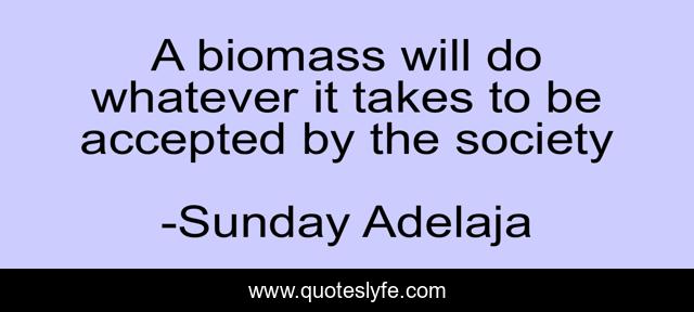 This page presents the quote "A biomass will do whatever it takes to be accepted by the society". Author of this quote is Sunday Adelaja. This quote is about life, people, acceptance, biomass, calling, society, purpose, truth,.