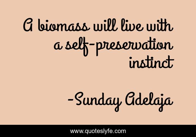 This page presents the quote "A biomass will live with a self-preservation instinct". Author of this quote is Sunday Adelaja. This quote is about life, biomass, calling, purpose, truth, instinct, self-preservation,.