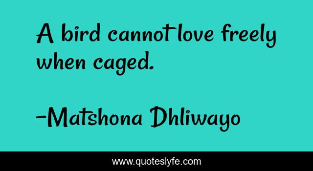 "Matshona Dhliwayo Quotes." Quoteslyfe.com, 2025. Sat. 06 Dec. 2025. <https://www.quoteslyfe.com/quote/A-bird-cannot-love-freely-when-caged-215453>.