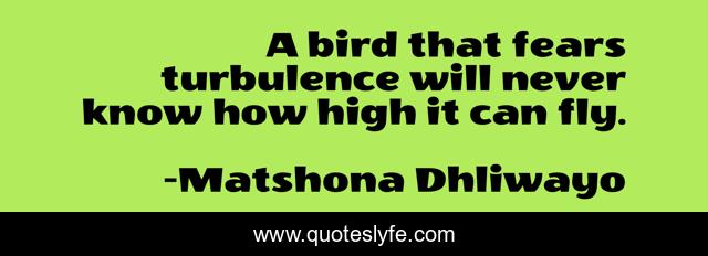 "Matshona Dhliwayo Quotes." Quoteslyfe.com, 2025. Sat. 06 Dec. 2025. <https://www.quoteslyfe.com/quote/A-bird-that-fears-turbulence-will-never-83404>.