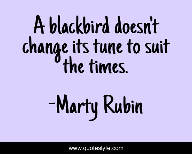 This page presents the quote "A blackbird doesn't change its tune to suit the times.". Author of this quote is Marty Rubin. This quote is about blackbirds, art, integrity, conformity, music,.
