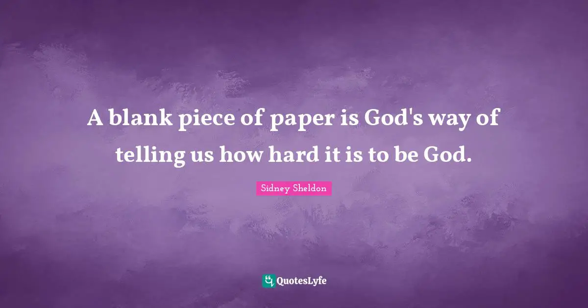 "Sidney Sheldon Quotes." Quoteslyfe.com, 2025. Mon. 29 Dec. 2025. <https://www.quoteslyfe.com/quote/A-blank-piece-of-paper-is-God-26808>.