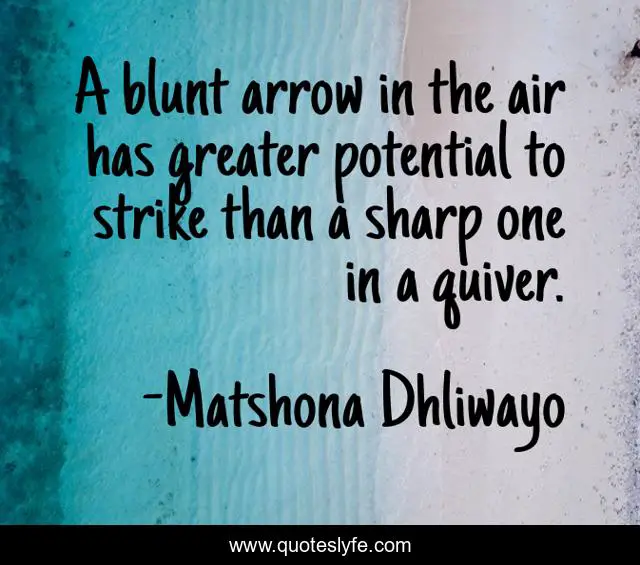 "Matshona Dhliwayo Quotes." Quoteslyfe.com, 2025. Mon. 08 Dec. 2025. <https://www.quoteslyfe.com/quote/A-blunt-arrow-in-the-air-has-83217>.