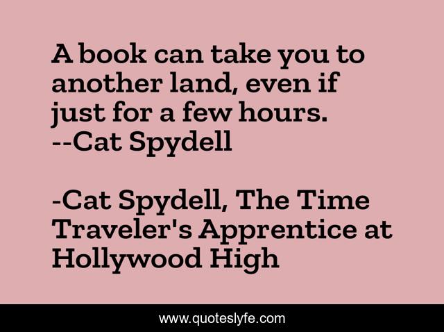 This page presents the quote "A book can take you to another land, even if just for a few hours. --Cat Spydell". Author of this quote is Cat Spydell, The Time Traveler's Apprentice at Hollywood High. This quote is about teen, teen-fiction,.