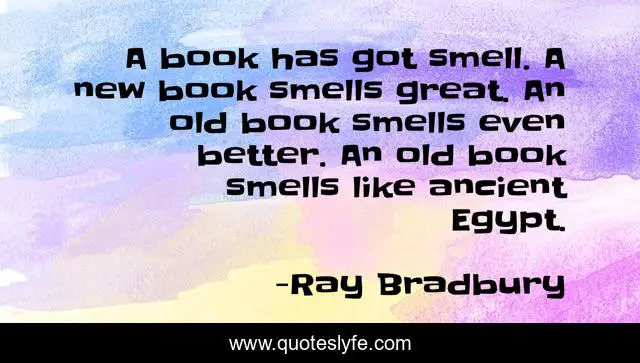 "Ray Bradbury Quotes." Quoteslyfe.com, 2025. Sat. 06 Dec. 2025. <https://www.quoteslyfe.com/quote/A-book-has-got-smell-A-new-311182>.