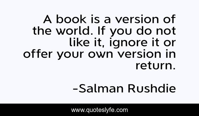 This page presents the quote "A book is a version of the world. If you do not like it, ignore it or offer your own version in return.". Author of this quote is Salman Rushdie. This quote is about writting, quotes, version, inspirational, enthusiasm, world, reading, book,.