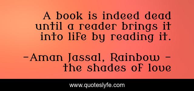 "Aman Jassal, Rainbow - the shades of love Quotes." Quoteslyfe.com, 2025. Sat. 06 Dec. 2025. <https://www.quoteslyfe.com/quote/A-book-is-indeed-dead-until-a-178587>.