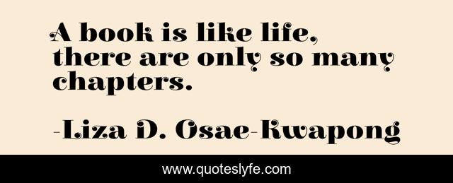 "Liza D. Osae-Kwapong Quotes." Quoteslyfe.com, 2025. Mon. 08 Dec. 2025. <https://www.quoteslyfe.com/quote/A-book-is-like-life-there-are-15078>.