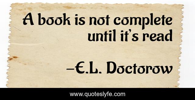 "E.L. Doctorow Quotes." Quoteslyfe.com, 2025. Fri. 05 Dec. 2025. <https://www.quoteslyfe.com/quote/A-book-is-not-complete-until-it-241123>.