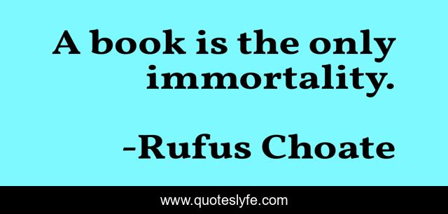 This page presents the quote "A book is the only immortality.". Author of this quote is Rufus Choate. This quote is about immortality, only,.