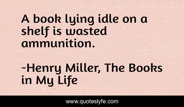 This page presents the quote "A book lying idle on a shelf is wasted ammunition.". Author of this quote is Henry Miller, The Books in My Life. This quote is about books, power,.