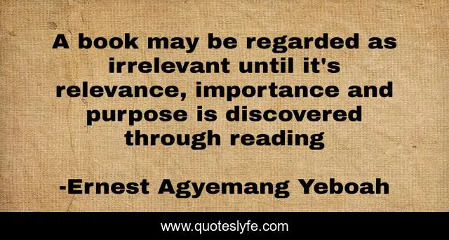 "Ernest Agyemang Yeboah Quotes." Quoteslyfe.com, 2025. Fri. 05 Dec. 2025. <https://www.quoteslyfe.com/quote/A-book-may-be-regarded-as-irrelevant-116342>.