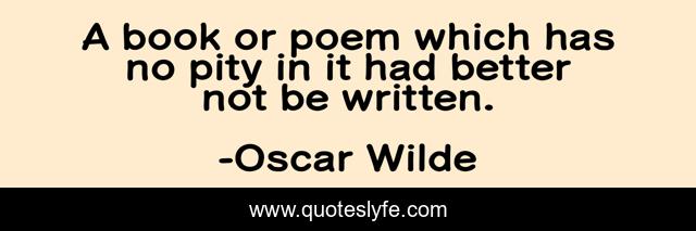This page presents the quote "A book or poem which has no pity in it had better not be written.". Author of this quote is Oscar Wilde. .