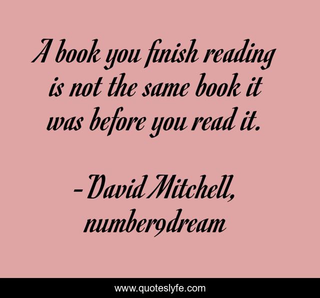 This page presents the quote "A book you finish reading is not the same book it was before you read it.". Author of this quote is David Mitchell, number9dream. .