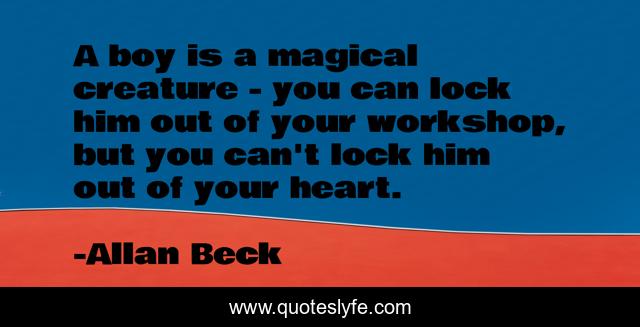This page presents the quote "A boy is a magical creature - you can lock him out of your workshop, but you can't lock him out of your heart.". Author of this quote is Allan Beck. This quote is about father, son,.