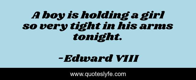 This page presents the quote "A boy is holding a girl so very tight in his arms tonight.". Author of this quote is Edward VIII. This quote is about boy, girl, arms,.