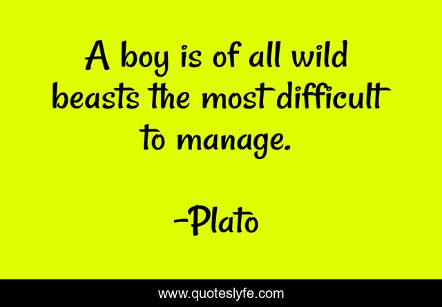 This page presents the quote "A boy is of all wild beasts the most difficult to manage.". Author of this quote is Plato. .