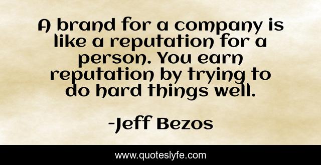 This page presents the quote "A brand for a company is like a reputation for a person. You earn reputation by trying to do hard things well.". Author of this quote is Jeff Bezos. This quote is about branding, brand, marketing,.