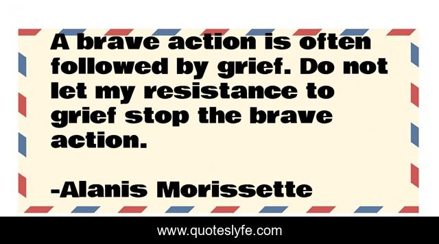 This page presents the quote "A brave action is often followed by grief. Do not let my resistance to grief stop the brave action.". Author of this quote is Alanis Morissette. This quote is about grief, brave, bravery, resistance, strong,.