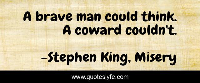 This page presents the quote "A brave man could think. A coward couldn't.". Author of this quote is Stephen King, Misery. .